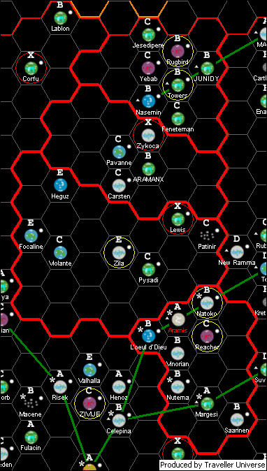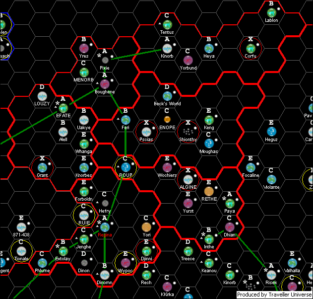 As duchies typically have the same name as their dominant subsector, it’s a typical misconception to think of the subsector mapping boundaries as the duchy boundaries. Below are the duchies of the Spinward Marches and the counties into which they are divided.